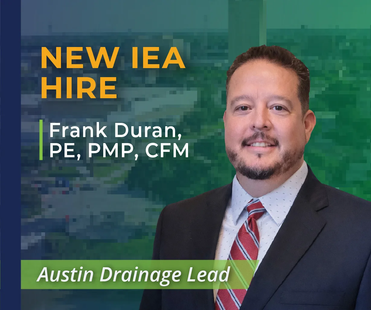 As IEA continues to expand, we welcome Frank Duran, PE, PMP, CFM, as the new Drainage Lead at the Austin location.
